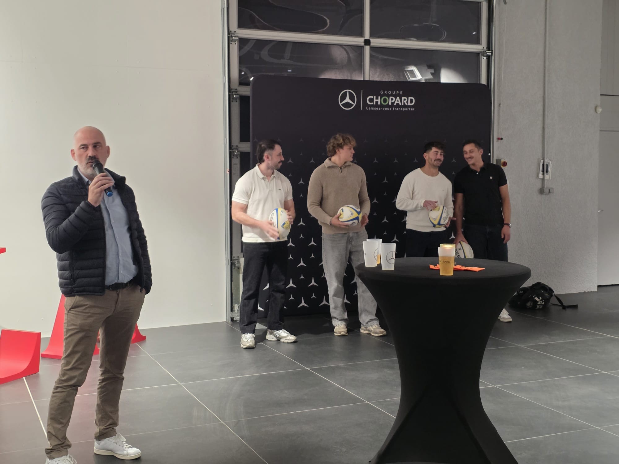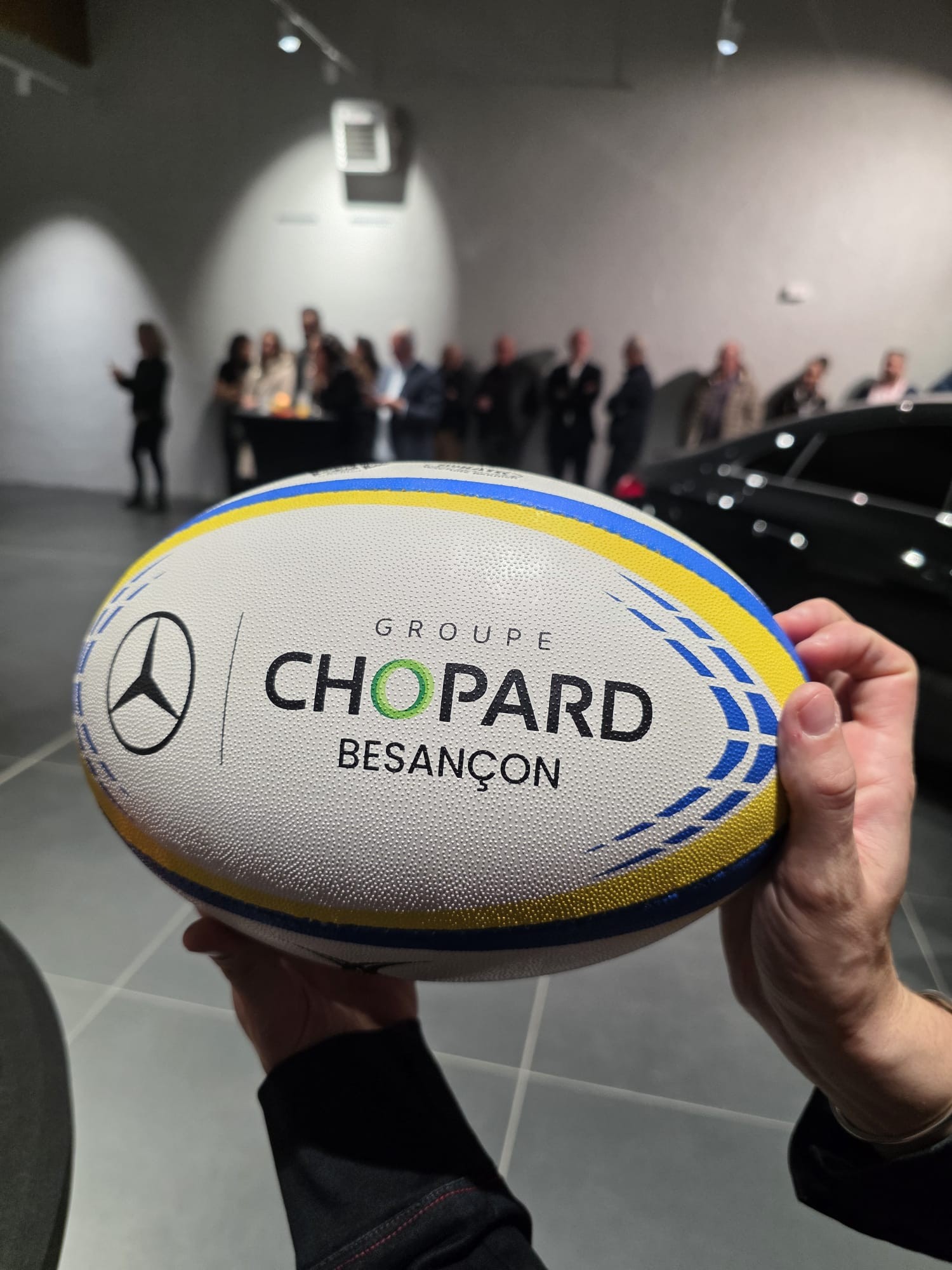 Plus de 80 adhérents du Club Affaires du Haut-Doubs ont pu être présents pour la remise des ballons, sponsorisés par Mercedes - Groupe CHOPARD au CAP RUGBY. Plusieurs joueurs nous on fait le plaisir d'être présents également ! Tous ensemble, nous avons pu passer une soirée conviviale, découvrir le nouveau CLA de la gamme automobile Mercedes-Benz et échanger entre adhérents.