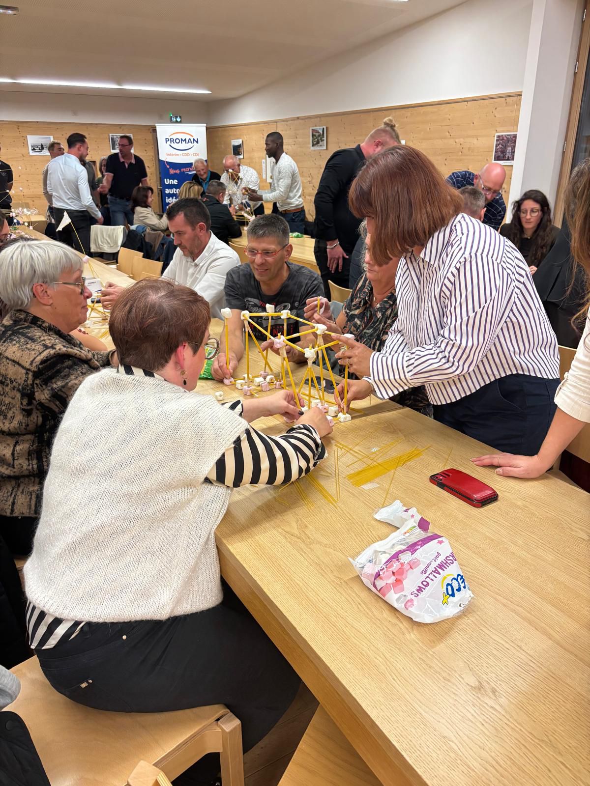 Le Club Affaires du Haut-Doubs a vécu une belle soirée organisée par Proman marquée par une présentation en mode interview des équipes de Frasne et Pontarlier et une activité immersive « découvrez les pépites qui vous entourent en construisant…notre porte Saint Pierre en chamallow et pâtes ». L’événement s’est poursuivi dans une ambiance conviviale et gourmande, où les membres ont partagé un moment chaleureux empreint d’une belle énergie et de bonne humeur. Un grand merci à Proman pour cette belle soirée placée sous le signe du partage et de la convivialité !
